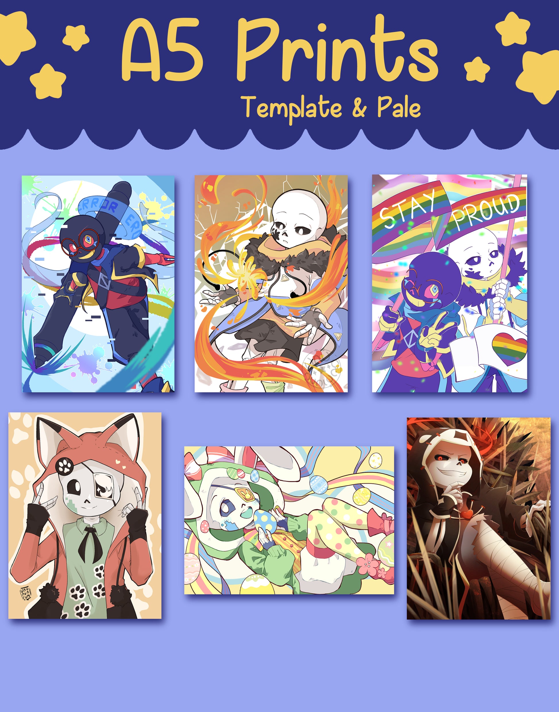 Most of them printed on photo paper, they are shiny but very detailed with very vibrant colors. Pride Month Template & Pale and Gauge with the Fox Hoodie are printed on studier, matte paper.